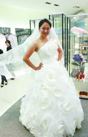 下月即將成為新娘的沈傲君婚紗還沒有著落,近日,在拍片間隙的她匆匆忙忙趕往上海某婚紗店試穿婚紗。