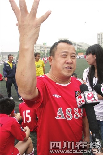 昨日下午,位于地震重災區的什邡中學體育場熱鬧非凡。一場由譚詠麟率領的香港明星足球隊,與孫楠率領的夢舟明星足球隊之間的足球賽正式開鑼。曾志偉、成奎安、羅家英、陳百祥、何家勁、洪金寶之子洪天明以及白巖松、景崗山,羽泉、文章、吳京、黃格選、陶偉等30多個影視歌明星輪番上陣,爭搶激烈。譚詠麟、曾志偉帶頭當老頑童玩得盡興,明星們還在比賽間隙穿插文藝表演,讓觀眾無比激動。
