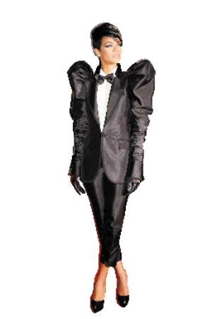 周一晚上,紐約大都會劇院星光熠熠,以一套怪異的大反領黑西裝禮服亮相的蕾哈娜,一出現就吸引不少目光,但最夸張的還是西服的加寬加厚的肩墊。她的這一裝扮和頭上長了鹿角的娜姐,齊齊入選當晚裝扮最雷人的明星榜單。