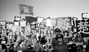 “花生”們始終舉著牌子、喊著口號,為陳楚生助陣