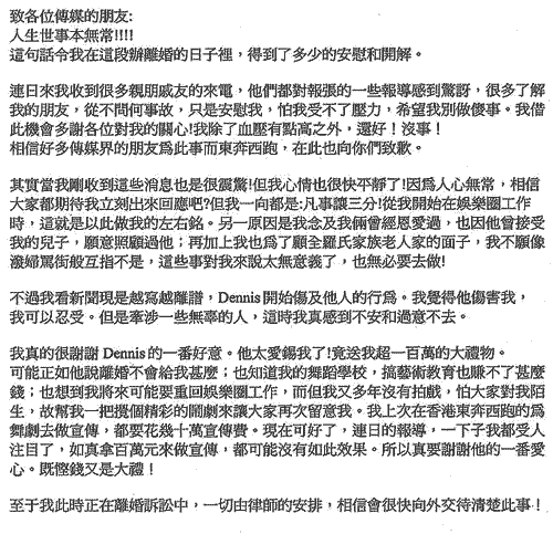 李賽鳳聲明