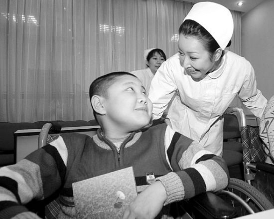 12月7日,作為中國紅十字會慈善愛心大使,孫悅來到沈陽解放軍463醫院,為肌無力小患者獻愛心!澳慵以阼F嶺?大城市!來,我們大家一起唱個歌好不好?”走進解放軍463醫院,眼前的孫悅和真正的護士沒什么兩樣——一襲白大褂,親切和藹的話語……“唱啥?”面對眼前的大明星,一邊的護士長顯然還有些緊張:“來首……《祝你平安》怎么樣?”孫悅連忙揮手打斷:“孩子們怎么會唱這個!來,大家一起唱《讓我們蕩起雙槳》!”全場10多個小患者努力而開心地唱著,孫悅的臉上笑開了花。