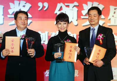 年底到處都在派送大獎,而2007年中國演藝名人公眾形象滿意度調(diào)查頒獎?wù)婵芍^包羅萬象,什么人都有,什么獎都頒。曲藝的姜昆,演員的王剛、陳建斌等,戲曲的韓再芬、胡文閣,舞蹈的孫杰和朱妍,港臺的趙雅芝、蘇有朋,唱歌的閻維文、譚晶,別說記者們暈,連現(xiàn)場的明星們都有點(diǎn)錯愕。