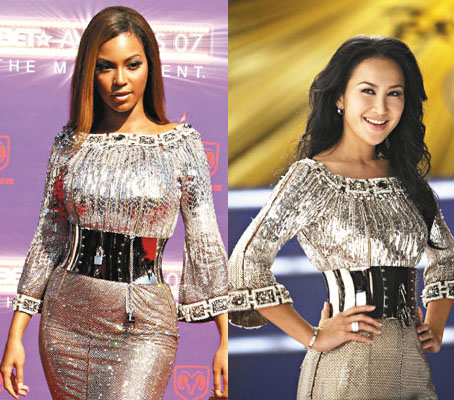 中新網(wǎng)12月19日電 東西天后不約而同,都愛D&G的閃耀性感,沉浸在愛河中的李玟,日前就穿上碧昂絲曾經(jīng)穿過的同一件手工禮服,登上長城拍奧運MV。