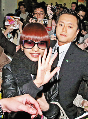 臺灣當紅偶像唐禹哲、組合棒棒堂及楊丞琳前日先后到香港宣傳,在機場先來個人氣前哨戰。率先抵達的唐禹哲,獲得近50名“粉絲”蜂擁包圍。不過若論聲勢、斗排場,棒棒堂以壓倒性的姿態勝出,逾百名“粉絲”接機,即使保安人數高達20人,依然淹沒在“粉絲海”中,被摸臉及扯衣服?蓯劢讨鳁钬┝铡皦狠S”出機場,被現場歌迷熱情包圍,連鞋子也一度被踩丟,多少有些狼狽。