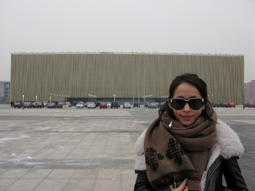 前晚演出是北京五棵松奧林匹克籃球館竣工后的首次啟用,該籃球館可容納1萬八千人,到時大部分奧運籃球賽就在這里舉行。一直想到看北京奧運籃球賽的Elva由于買不到票,前陣時間還相當郁悶,沒想到這次竟提前來到籃球館,趕在姚明投籃之前演出,心情自然是相當好。籃球館座套采用網狀吸音裝置,其它部分都充分考慮了吸音處理,這些為賽后舉辦演唱會創造了條件。另外中央吊斗屏最大水平以及垂直視角為150度,無論坐在看臺那個位置,觀眾都能清楚地看到屏幕上的圖像,難怪Elva在演出后,激動地對經紀人說有機會一定要到這個場館辦個唱,讓1萬八千人同時間和自己一同高歌。