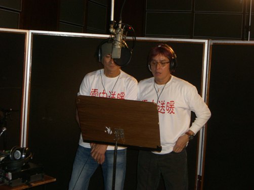 董嘉耀趕到錄音棚時(shí),120多位香港演藝界名人以及鳳凰衛(wèi)視主持人吳小莉、薩文、姜聲揚(yáng)、劉珊玲、江欣榮和評(píng)論員楊錦麟都已經(jīng)從各處趕來(lái)。錄音棚外,無(wú)數(shù)歌迷影迷也得知了“雪中送暖”行動(dòng)的消息,站立在瑟瑟寒風(fēng)中,用默默的等待支持著這次公益行動(dòng)。