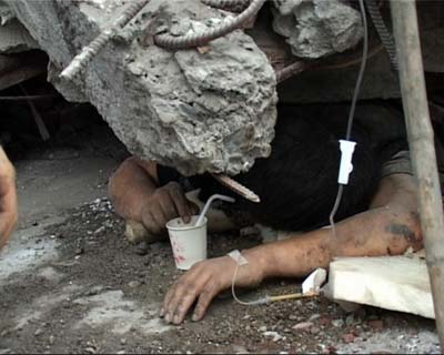 《冷暖人生》以關注人性著稱,這一次他們也將透過新聞報道,更多地記錄那些災難背后受難者的人生巨變,力圖展示整個的救援情況,并帶回去更多人性的故事。曉楠介紹說:“現在我們主要有幾個方向,比如說在都江堰,因為從災區很多地方出來的人,是通過沖鋒舟被運出來的,有很多親人在渡口上長時間的等待,看運過來的人其中有沒有自己的親人,所以我們可能會制作一期節目就叫《渡口》。記錄那些人的漫長煎熬的等待,還原很多等來和沒有等來親人的故事。因為我特別想把他們還原成比較鮮活的生命,他們原來的夢想和生命進程是什么,他們的喜怒哀樂突然間戛然而止。對他們來講,生命的感覺,包括對他們親人來講,可能我們更能理解,這次災難在人的身上所留下的巨痛。同時,也是它所折射出人的力量是怎么樣的。另外,我們可能還會去做一些學校的采寫,用我們的視角去還原原來的一個班。總之,還是去記錄人,我們的目的是尋找人的故事,去尋找人生命的故事。當然,還有救助的那些人,在這一時刻他們和素不相識人的命運連在一起。”