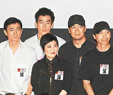 劉德華(左起)、任賢齊、張小燕、張國立、馮小剛等演藝界重量級人物,昨出席香港“演藝界512關愛行動”。