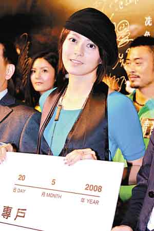《青苔》香港首映 梁詠琪代表公司捐款10萬元