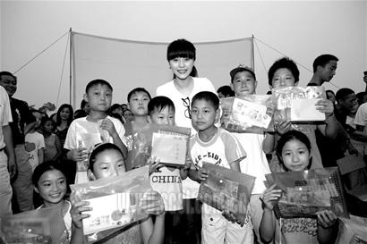 素面朝天的范冰冰在現(xiàn)場一直大聲地講話,賣力地和孩子們交流,但由于現(xiàn)場實在太喧鬧,記者無法聽清范冰冰和孩子們在交流什么,但是人群中不時爆發(fā)出一陣陣的笑聲,現(xiàn)場氣氛十分熱烈,讓大家感受到孩子們積極樂觀的精神面貌。同時記者還了解到,昨晚放映的電影是范冰冰主演的《精舞門》,這部電影從來沒有公開放映過,劇組取消了所有的首映活動,在全片完成的第一時間把膠片帶到災區(qū),希望災區(qū)的孩子們和其他地方的孩子們一樣,能同步享受到開心和快樂。
