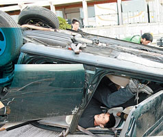 中新網7月6日電 謝霆鋒5日拍攝林超賢導演新片《證人》時,除了一場撞車戲外,還要在翻轉了的車廂內倒掛拍攝。賣命演出的他,不但沒有叫苦,更笑言這套戲已算小兒科。至于公司會否開戲給他與鐘欣桐合作,霆鋒稱未落實的事他不會聽。