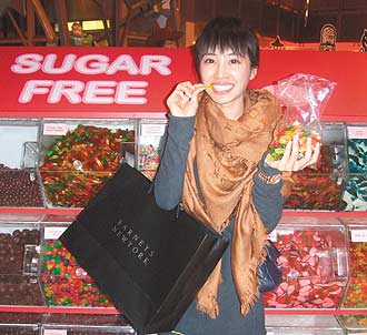 中新網10月7日電 蔡依林(Jolin)人到紐約,大手筆花萬余元血拼,卻是不買包、只買糖,向來律“口”甚嚴的她竟然吃起巧克力!其實她買的糖,都是sugar free(無糖)的啦。