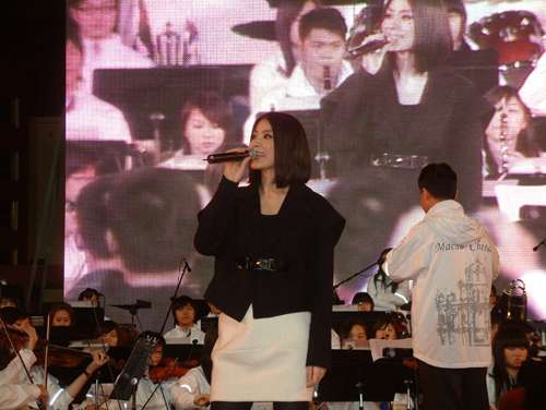 中新網(wǎng)12月22日電 陳慧琳前晚到澳門出席回歸慶祝活動(dòng),與五十位青少年組成的澳門青年交響樂(lè)團(tuán)合作,演繹《熏衣草》。