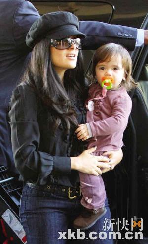 薩爾瑪·海耶克外出 懷中女兒悠閑望跟拍記者(圖)