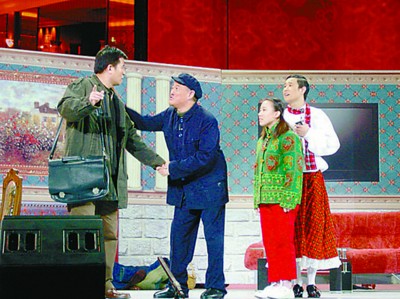 之前趙本山已經和其他三位進行了為期兩周的排練,這次一亮相,期待已久的現場觀眾就報以熱烈的掌聲。可惜昨日久經沙場的趙本山出現了失誤,竟然把小沈陽身穿富有 “蘇格蘭情調”的打扮說成了 “蘇格蘭調情”,讓臺下觀眾一陣哄笑。