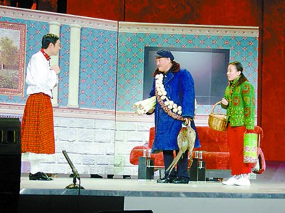 昨日,央視春晚迎來帶觀眾的第二次彩排,此前一直深藏不露的趙本山小品 《不差錢》終于揭開神秘面紗。在由本山大叔攜愛徒小沈陽、毛毛以及央視主持人畢福劍聯袂上演的這段小品中,本山、老畢兩位大腕甘當綠葉,讓兩位新人成為十足的大紅花。盡管該小品贏得不少掌聲,但也有部分觀眾表示不夠出彩,與當年崔永元參與的 《昨天·今天·明天》相比有不小的差距。此外,小品的臺詞腳本昨晚也在網上曝光,引來眾多網友點評。