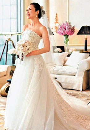 昨日黎姿透過無線發了兩款婚照,分別是一襲婚紗和一襲粉紅晚裝,雖未見丈夫馬廷強在旁,但黎姿笑容甜絲絲。據知這輯相是黎姿和丈夫設宴前一天提早入住酒店補拍的,由著名攝影師張文華操刀。