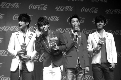 作為目前最受歡迎的青春偶像組合,“飛輪海”4位帥哥成員吳尊、炎亞綸、汪東城和辰亦儒齊集上海,推出今年可口可樂全新廣告。由于早有“飛輪海”成員不和的傳聞,吳尊和“大哥”汪東城在發(fā)布會上更是“明爭暗斗”,但記者一提到前輩F4,四人均立刻不屑道,“他們只是機(jī)遇比較好”。