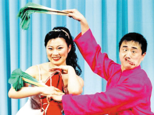 作為趙本山弟子中唯一一個從小學習二人轉的專業演員,閆光明不僅嗓子好、武功好,戲路也寬,在“首屆趙本山杯二人轉大獎賽”中曾獲表演銀獎。閆光明非常刻苦,雖然年齡不小了,但現在還是遼寧大學本山藝術學院民族藝術表演專業的大四學生。去年的全國大學生藝術節上,閆光明和妻子趙海燕以一段新編二人轉《梁山伯與祝英臺》獲得一等獎。能有今天的成績,閆光明自己也“沒想到”:“我生在二人轉世家,能有今天的成績說明這么多年的努力沒白費!彼膊煌兄x師傅趙本山,“師傅讓二人轉越來越紅火,我得繼續努力,把我熱愛的民間藝術發揚光大。”舞臺上擅長模仿趙本山的閆光明說,“我們對天津觀眾很熟悉,因為天津有劉老根大舞臺,我認識了很多天津朋友。這次來天津演出,希望大家一樣支持我!