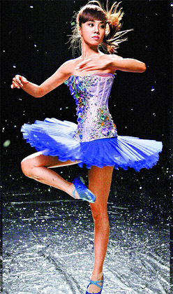 另外,蔡依林為本月27日即將發行的新專輯《花蝴蝶》,去年下半年都在苦練芭蕾舞的絕技“鞭轉”,要不中斷的原地旋轉20圈。日前拍預購廣告當天,為表現此技藝,NG60次才完成一鏡到底。去年她特地上瑜伽課程加強肌耐力,強忍暈眩及腳底磨出水泡,終于在3個月后完成任務,她苦笑說:“這是我練過最久的才藝。”