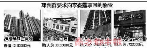 另外,有報道指,鄧劍群在向法院交待這些年交與李姿霆的多處物業時稱,當初以李姿霆的名義購買物業只是為怕兩人戀情會因他登記成為業主而被揭發,但并沒有打算將物業以饋贈形式轉讓給李姿霆,如關系終結,她持有的業權將悉數歸還給鄧劍群。