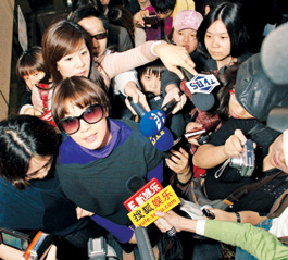 賈靜雯昨天乘坐最早一班從臺北桃園機場直航浦東的飛機于上午11點準(zhǔn)時抵滬,大批上海、臺灣的媒體早已在機場等候。隨著旅客漸漸走出,卻遲遲未見賈靜雯的身影,一位空姐一語道破:“我剛才看到她往那邊的VIP通道走了。”頓時引起媒體的緊張,怕賈靜雯再度上演美國酒店和媒體“躲貓貓”的戲法。