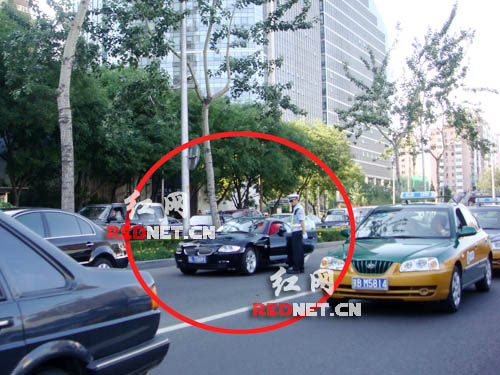 張亞東路邊接受交警詢問。