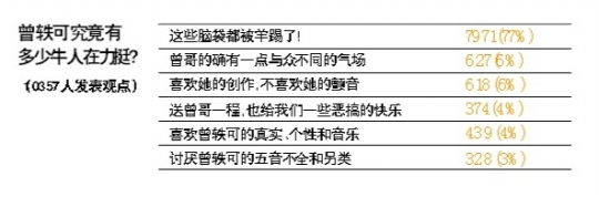 同樣在開心網(wǎng)上,針對“曾軼可身后究竟有多少牛人在力挺?”的帖子,有10357人(截至昨日)投票表態(tài),結(jié)果有7971人選擇了“這些腦袋都被羊踢了”記者 齊帥 實(shí)習(xí)生 戴曼曼
