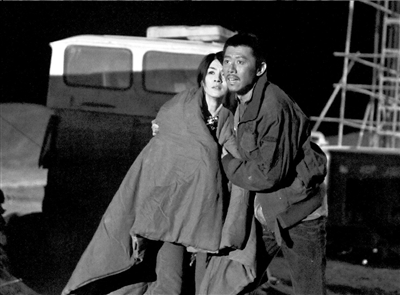 前晚,《西風烈》在祁連山腳下的一個礦石場拍攝夜戲。從敦煌市區到拍攝地,一路荒漠。在深夜接近零度的氣溫下,高群書執導拍攝了一場吳鎮宇焚燒押解警察和亡命鴛鴦所在的帳篷,想把他們全部燒死的戲份。