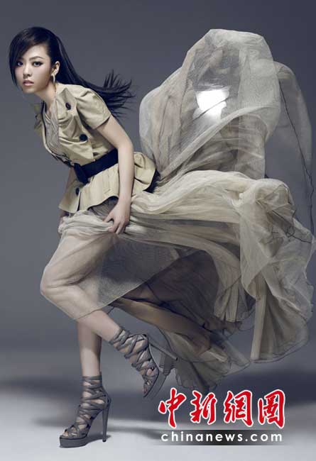 內地女歌手張靚穎以全新造型登陸國內某時尚平面雜志,成為封面女郎,幾款造型落落大方,讓人眼前一亮。