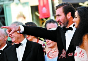 綽號是“國王”的前曼聯球星坎通納前日(18日)在一片球迷的歡呼聲中來到戛納,出席他出演的電影《尋找埃里克》的首映式。在首映式前的記者會上,坎通納的風頭蓋過了英國導演肯·羅奇,成為記者提問的對象,電影記者會變成了一場球賽發布會,“足球”占領了電影宮。