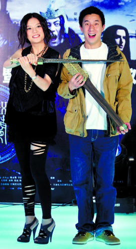 和趙薇一起登臺的房祖名透露:“趙薇、陳坤一點也不好笑,這部片全靠我來增添喜劇色彩。”(記者楊林)