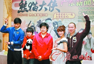 結束了北京首映禮之后,11月18日,《熊貓大俠》導演王岳倫帶著演員后舍男生、鄧家佳、李曉川抵達廣州宣傳。