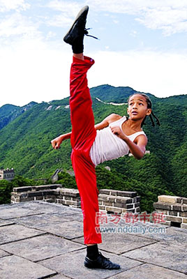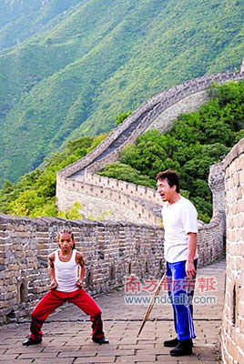 由成龍和威爾·史密斯的兒子賈登·史密斯(JadenSmith)主演的《功夫夢》(The Karate Kids)近日曝光了幾張官方劇照,畫面所見,成龍在長城上訓(xùn)練賈登·史密斯,小子架勢十足。該片由中影集團、索尼·哥倫比亞和威爾·史密斯(Will Smith)旗下的Overbrook娛樂公司聯(lián)合投資拍攝,將于明年6月11日在北美公映,中國也將同步引進。