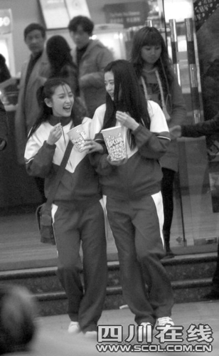李冰冰、全智賢主演的《雪花與秘扇》日前正在上海熱拍。近日,兩大美女集體出現(xiàn)在上海鬧市中心,不過卻未引起騷亂。因為,兩大美女的扮相著實讓人大跌眼鏡,白色的中學(xué)生校服,長發(fā)披肩,全智賢在發(fā)梢別上了可愛的粉色蝴蝶狀發(fā)夾,李冰冰還弄了一個當年最流行“金魚頭”,兩人手牽手,吃著爆米花,有說有笑,難怪連路人都沒有發(fā)現(xiàn)。(記者 馬丹)