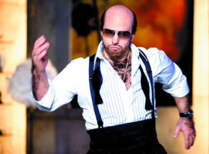 好萊塢著名帥哥湯姆·克魯斯(阿湯哥)兩年前在電影《熱帶驚雷》中丑化自己,扮演禿頭肥佬制片人雷死·格羅斯曼,沒想到他竟然扮丑扮上癮了。近日,MTV電影獎主辦方制作了一組宣傳短片,阿湯哥又化身為格羅斯曼出現在其中兩支短片里。在第一支短片回顧了一下格羅斯曼在《熱帶驚雷》中的黑人舞曲,接著就看見他在辦公室破口大罵《暮光之城》的帥哥演員羅伯特·帕丁森,非常搞笑。