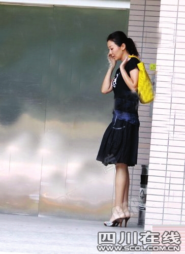 孫楠“婚變”消息一出,潘蔚就消失人前請假在家,留給外界惟一的聯系就是她的全球呼。7月21日,在她家門口等候多時的記者,終于等到潘蔚出門。記者猜測她會不會是去見剛開完演唱會的孫楠,不料潘蔚的車卻開進了三元橋附近的某大院里。潘蔚停好車后打著電話迅速上樓,記者在潘蔚上樓后看了看樓牌,方得知這里是旅游衛視的辦公區。潘蔚當天一身清涼裝:T恤、短裙、高跟鞋,仔細觀察其小腹依然平坦,未見身材有何異常,完全不是之前媒體所報懷孕已6個月的樣子。
