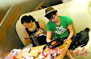 兩人用餐完畢,張杰已經(jīng)將一臺小巧的黑色上網(wǎng)本搬到桌子上并且自顧自地玩了起來。而一旁的謝娜則拿著一本港臺八卦雜志看得津津有味。兩人一副互不搭理的表情,實在看不出是一對情侶。不過沒多久,正在上網(wǎng)的張杰不知道看到了什么好玩的東西,先是自己笑了起來,然后馬上碰了一下謝娜讓其一起觀看。而一向愛笑的謝娜剛看了電腦沒幾秒鐘就已經(jīng)笑得倚在了張杰的身上,兩人嘻嘻哈哈了好一會兒才慢慢回過神來。離開前,謝娜不知何故先走出餐廳在馬路邊上四處看了一圈又返回。沒多久,謝娜再次與張杰一起出現(xiàn)并且同車離開。 (魚)