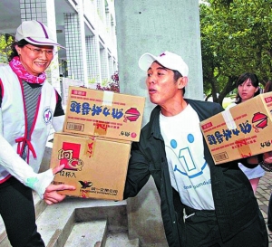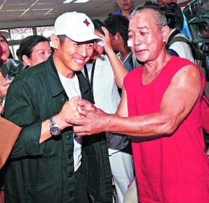 李連杰8月13日起帶著物資深入臺灣災區,為備受超級臺風莫拉克摧殘的臺灣中南部災民及義工打氣。前日他繼續探訪災區,有災民向他哭訴:“我家全沒了!”李連杰趕緊握住他的手給予安慰,場面感人。不過也有輕松的時候,李連杰所到之處,大批災民和義工均蜂擁上前看熱鬧,許多年輕女義工更是尖叫著將他團團圍住,李連杰只能笑說:“這么圍著,我怎么探望災民啊。”