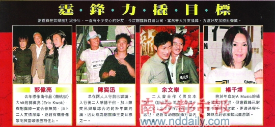 謝霆鋒自組公司的傳聞不是一天兩天的事兒了,昨天新鮮出爐的香港某周刊又重提“舊事”,稱盡管英皇開出不少優越條件留人,但謝霆鋒“去意已決”,而老婆張柏芝亦是“無限量支持”,當做新公司第一簽約藝人。據稱謝霆鋒心中已有不少“挖墻腳”的人選,目標包括陳奕迅、楊千女華、余文樂等一幫友人,楊千女華對此以“還沒正式談,我自己都還不知道,告訴你什么呢?”作回應!x霆鋒與英皇的合約尚未到期,為何老刮“跳槽”這陣風?恐怕是:管它真亦假,先炒再說!