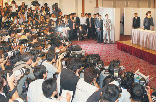 中新網(wǎng)9月18日電 酒井法子在東京千代田飯店舉行的謝罪記者會(huì),日本多家媒體都是全程直播,不少日本記者更是直言指出,她的架勢(shì)遠(yuǎn)勝過(guò)昨日上任的新首相鳩山由紀(jì)夫。