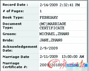 有媒體爆料,在美國新澤西州網(wǎng)站發(fā)布的結(jié)婚登記信息顯示,張靚穎已與英文名“MICHAEL ZHANG”的男子注冊結(jié)婚。這位神秘男友邁克的真實(shí)身份,流傳了兩個版本。一是張靚穎合作多年的經(jīng)紀(jì)人馮科,但馮科的真實(shí)英文名“MICHAEL FENG”,與登記的信息有一些出入。二是這位“MICHAEL ZHANG”是位富二代,中文名張海濤自小隨做服裝貿(mào)易生意的父母移居美國,家族身家數(shù)十億,也是精通20多種樂器的“音樂狂才”。有人爆是在某國際音樂節(jié)上,經(jīng)譚盾介紹,張靚穎認(rèn)識了這位富二代,而該男友更暗地幫助張靚穎主攻虎年央視春晚。兩人更在今年情人節(jié)在美國新澤西州登記結(jié)婚。