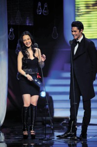 沒想到阿嬌在舞臺上遭遇了更大的尷尬。作為頒獎嘉賓,阿嬌被安排與外國男模本杰明·唐同時出場,主辦方表示,這個搭配的確是事先安排好的,雙方也應該在上臺前對了臺詞。可就是對了臺詞的阿嬌,也許因為太緊張,一上臺竟然語無倫次,當然這個時候她用的語言是英文。