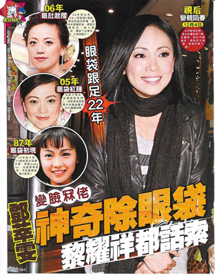 新晉“視后”鄧萃雯最近被香港媒體盯上,不僅和“視帝”黎耀祥傳出緋聞,日前又被某雜志爆出她做了切除眼袋手術,極速“變臉”成功。對此,鄧萃雯解釋這是做面膜達到的美容效果。香港女星“變臉”現象頗為普遍,謝安琪、郭可盈、鄭裕玲等人都被媒體質疑做過整形手術,但幾乎無一人承認。