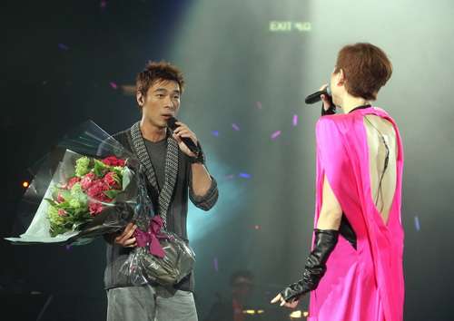 香港“大公報”消息,安仔雖然要出席新城的頒獎禮,但他也抽空任嘉賓。安仔的出現(xiàn)震撼紅館。鄭秀文介紹嘉賓出場時,笑說:“今晚有一個好特別的人來做嘉賓,現(xiàn)在不透露太多。先喝口水,因?yàn)橄旅孢@支歌已經(jīng)有N年沒唱過啦!”隨即樂隊(duì)奏出《其實(shí)你心里有沒有我》的樂曲,全場歌迷立即瘋狂尖叫。此時手執(zhí)一束桃紅色鮮花的許志安上臺,相當(dāng)浪漫。