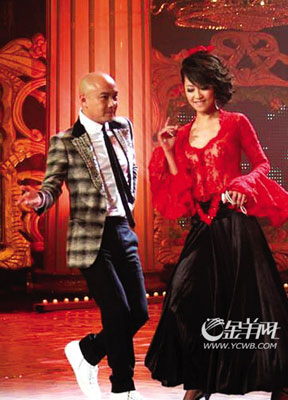 隨后,主持人曹可凡提出讓他們夫妻共舞一曲,兩人尷尬一笑后很配合地扭起了國(guó)標(biāo)舞步。張衛(wèi)健舞技不精,幾個(gè)回合后只好作罷,曹可凡笑稱(chēng):“你可以來(lái)舞林墊底了!”觀眾要求兩人重演求婚情景:“來(lái)一段跪地求婚吧!”對(duì)此,張衛(wèi)健卻玩起太極:“跪過(guò)了,今天就不跪了。”最后兩人來(lái)了一個(gè)甜蜜的擁抱。