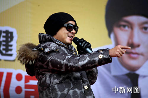中新網南昌1月17日電(劉占昆)16日,香港著名影視明星張衛健現身南昌,與在寒風中苦苦等候他兩個多小時的粉絲見面。張衛健在現場用幽默的話語調侃南昌歌迷,在離開現身時引得眾多忠實粉絲狂追數十米遠。