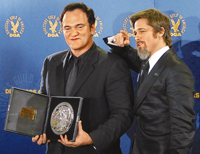 香港“文匯報(bào)”消息,上周六在洛杉磯舉行的本年度美國(guó)導(dǎo)演公會(huì)獎(jiǎng),作為候選電影《無恥混蛋》的主角,皮特特意陪同導(dǎo)演昆汀出席已讓人有點(diǎn)意外,全因前者連金球獎(jiǎng)都照樣缺席。原來他是想借和女友朱莉雙雙露面,粉碎外間有關(guān)他倆分手的傳聞。