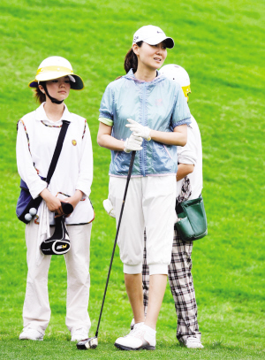 昨天在鏡頭面前的孫楠膚色黝黑,穿著一件透明質地的外套,在球場上很活潑,時不時拿出望遠鏡看自己的成績,非常較真。在接受記者采訪時,孫楠表示自己非常喜歡打高爾夫,“我打高爾夫4年半了,現在的級別還不是很高,我覺得打高爾夫欲速則不達,就像事業一樣,很有挑戰性。”